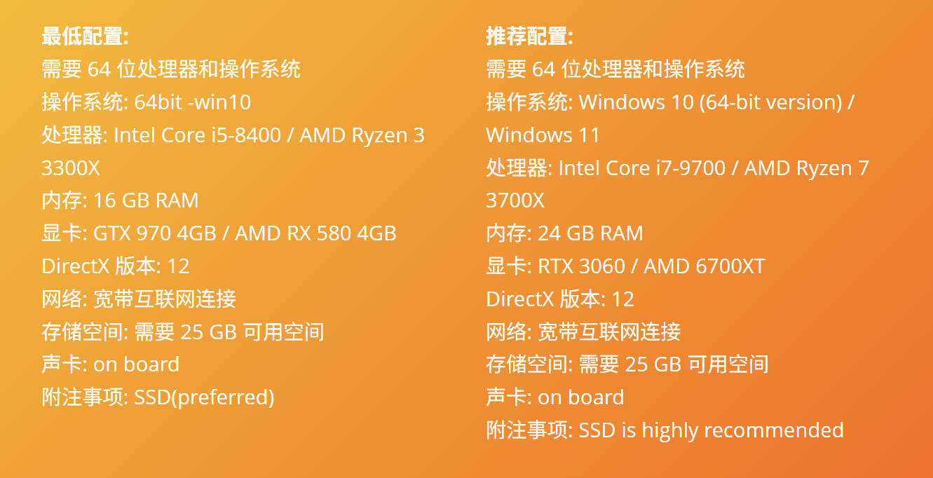 推荐配置: